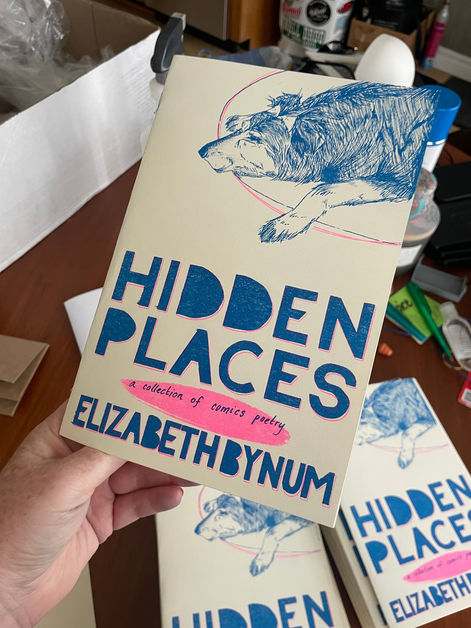 A comics poetry zine! 32 pages (incl covers). 6”x9” risograph 2-color printed